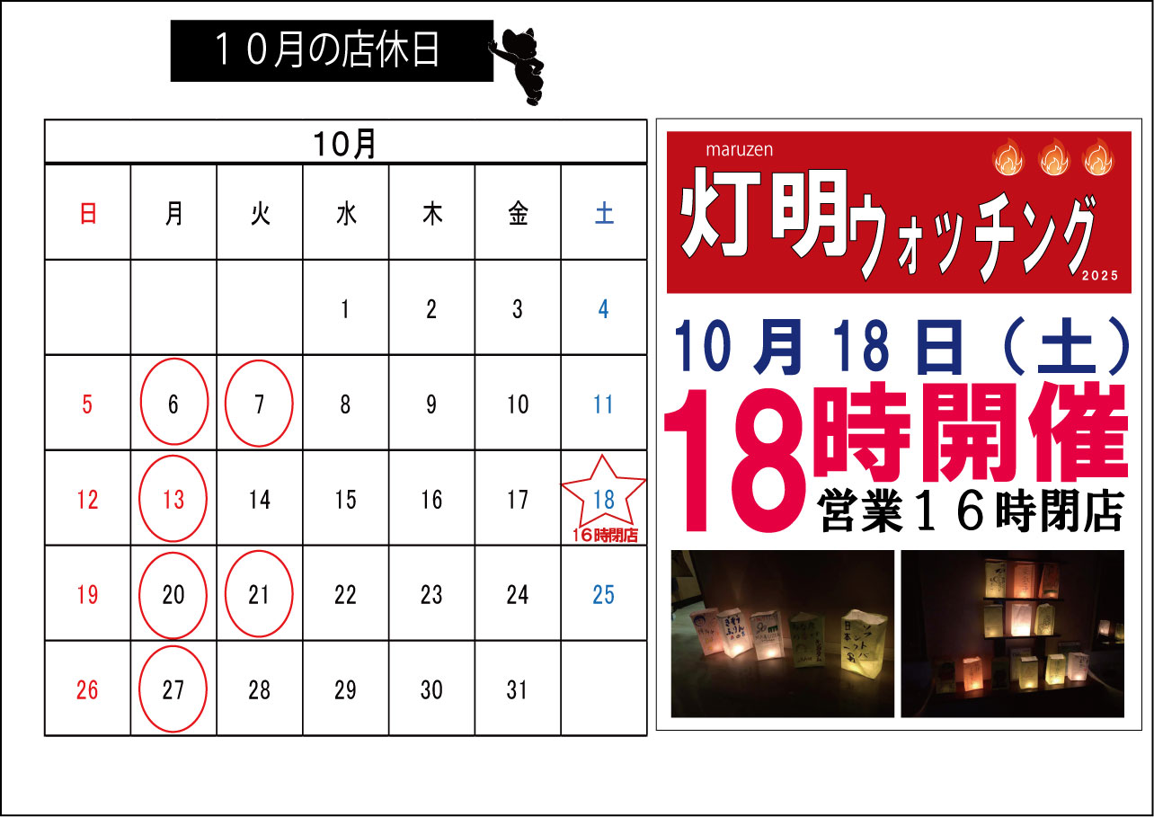 そんなこんな10月の店休日のお知らせです。